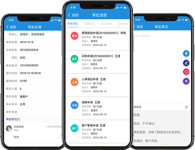 2、支持各类手机审批表单和流程的自定义,移动和PC信息实时同步。