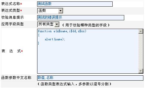 如果以上不能满足要求,可以自己定义新的字段校验规则,称之用户类型的字段校验,此时需要编写正则表达式或javascript函数: